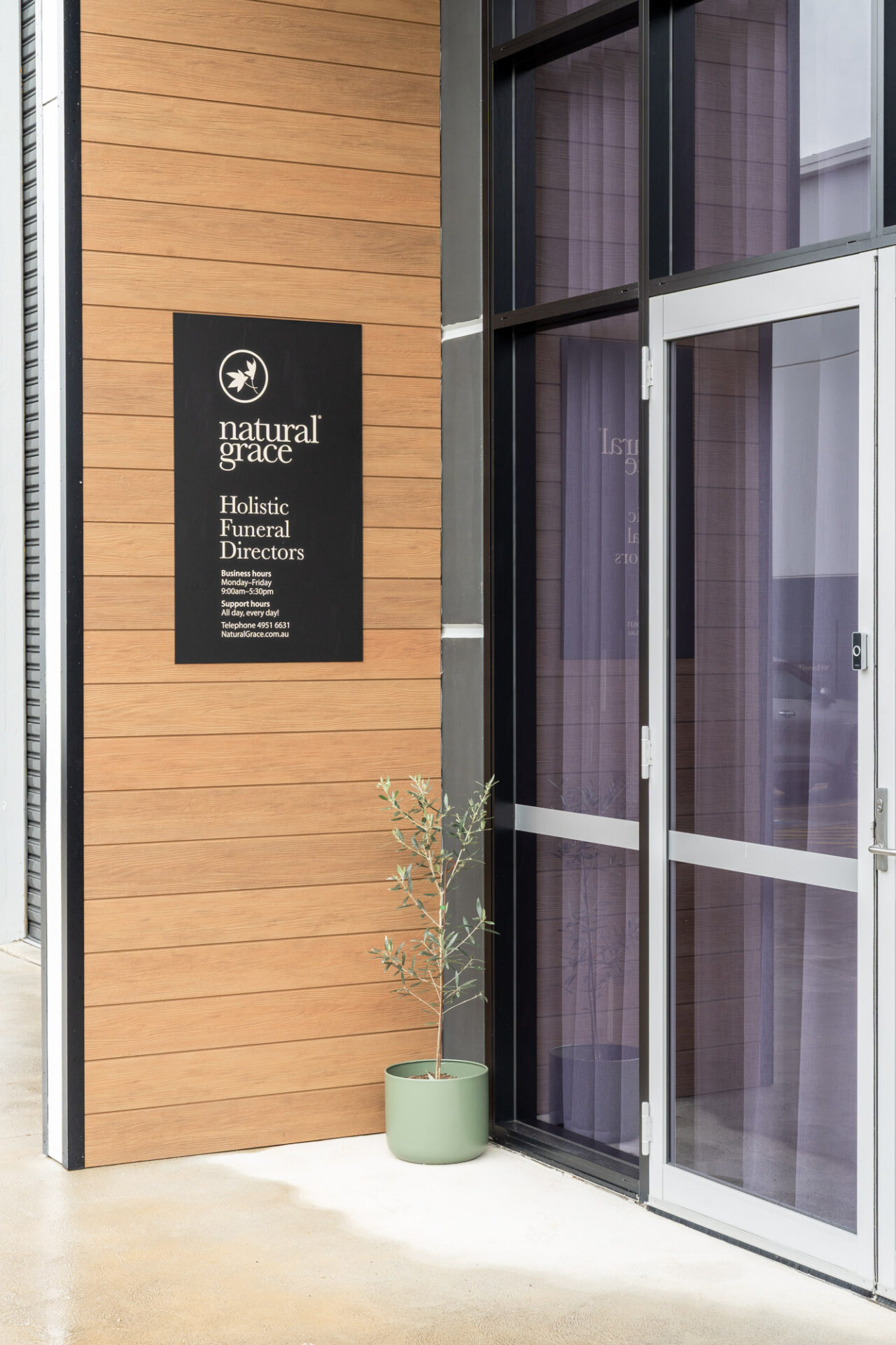 The location in Beresfield provided a canvas for this exceptional commercial office fitout. Beresfield, a suburb known for its industrial and commercial activity, is an unconventional choice for a business like Natural Grace. However, the Total Fitouts Newcastle team saw an opportunity to create a sanctuary, an oasis of calm that stands in gentle contrast to its surroundings. The exterior of the building, as seen in the attached photos, features a clean and modern aesthetic with timber-look cladding and a prominent black sign bearing the “Natural Grace” logo and contact information. This professional and dignified facade sets the tone for the interior, hinting at the serenity that awaits inside. This commercial office fitout cleverly utilises the building’s shell to create a peaceful entry point, with a small potted olive tree adding a touch of natural life and a welcoming feel.