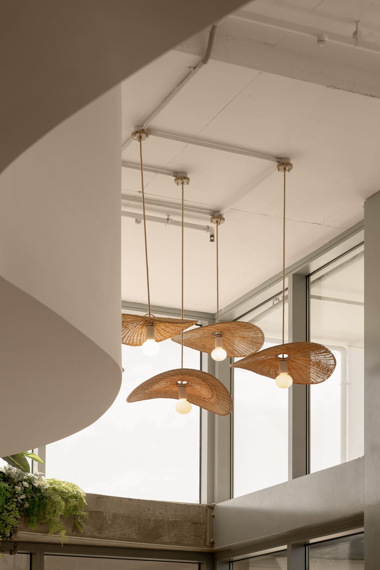 The bespoke detailing throughout VIDA Mexican elevates the space beyond standard commercial interiors. Large pendant lights made from woven rattan and natural fibres hang from the high ceiling, forming sculptural pieces that soften the industrial elements and exposed ductwork. These lights distribute a warm, inviting glow that complements the natural tones of the fitout, while rope suspension details add texture and reinforce the connection to natural materials. Strategically positioned, the lights draw the eye upward, giving the expansive ceiling a deliberate and considered presence.
